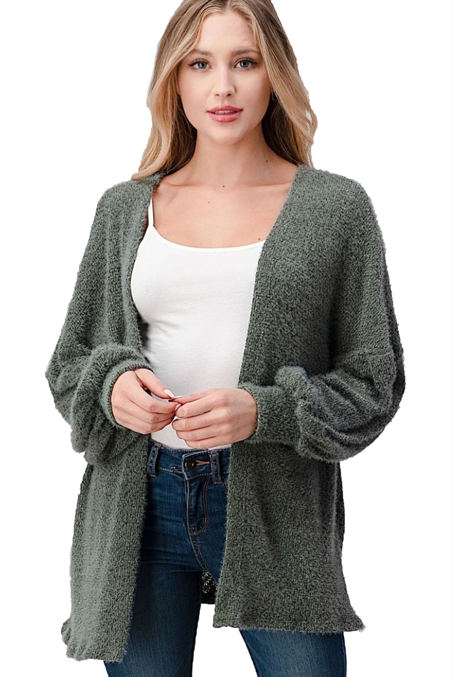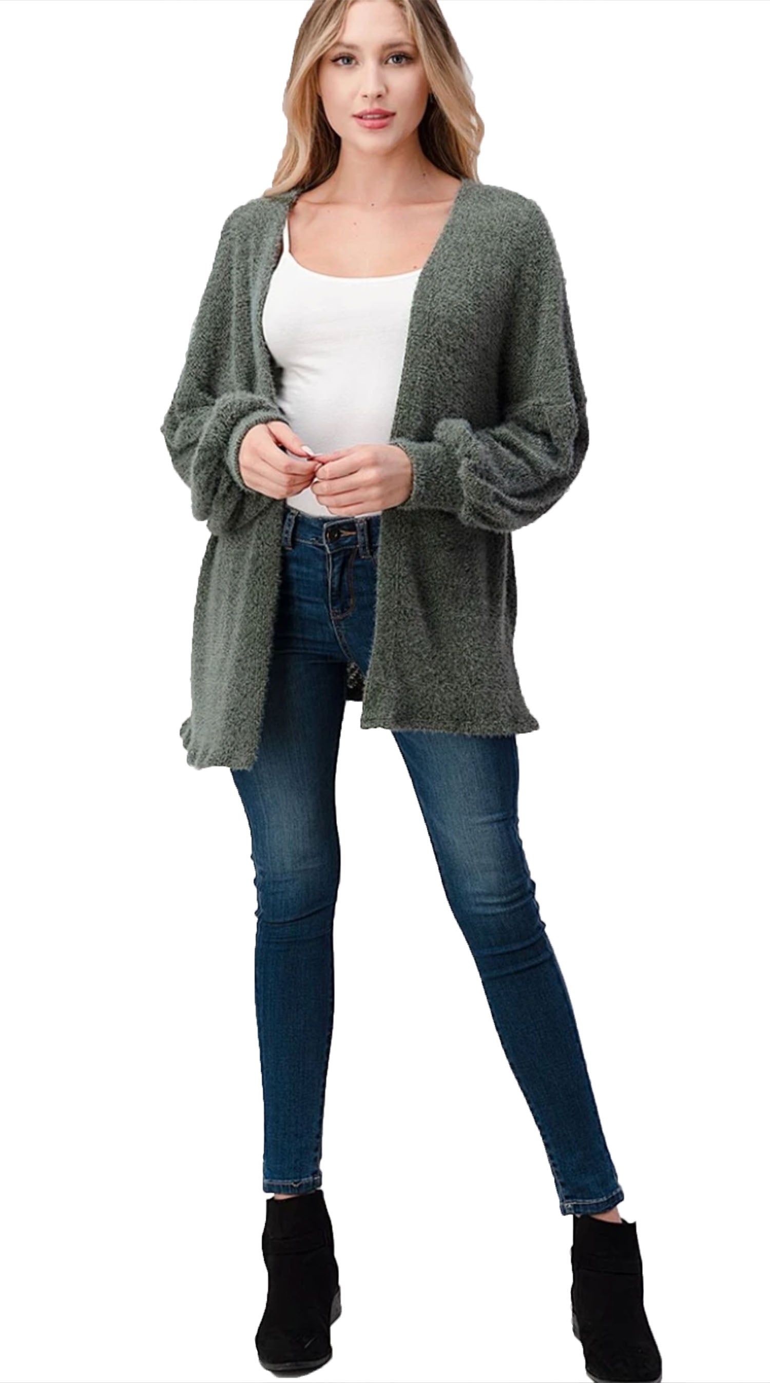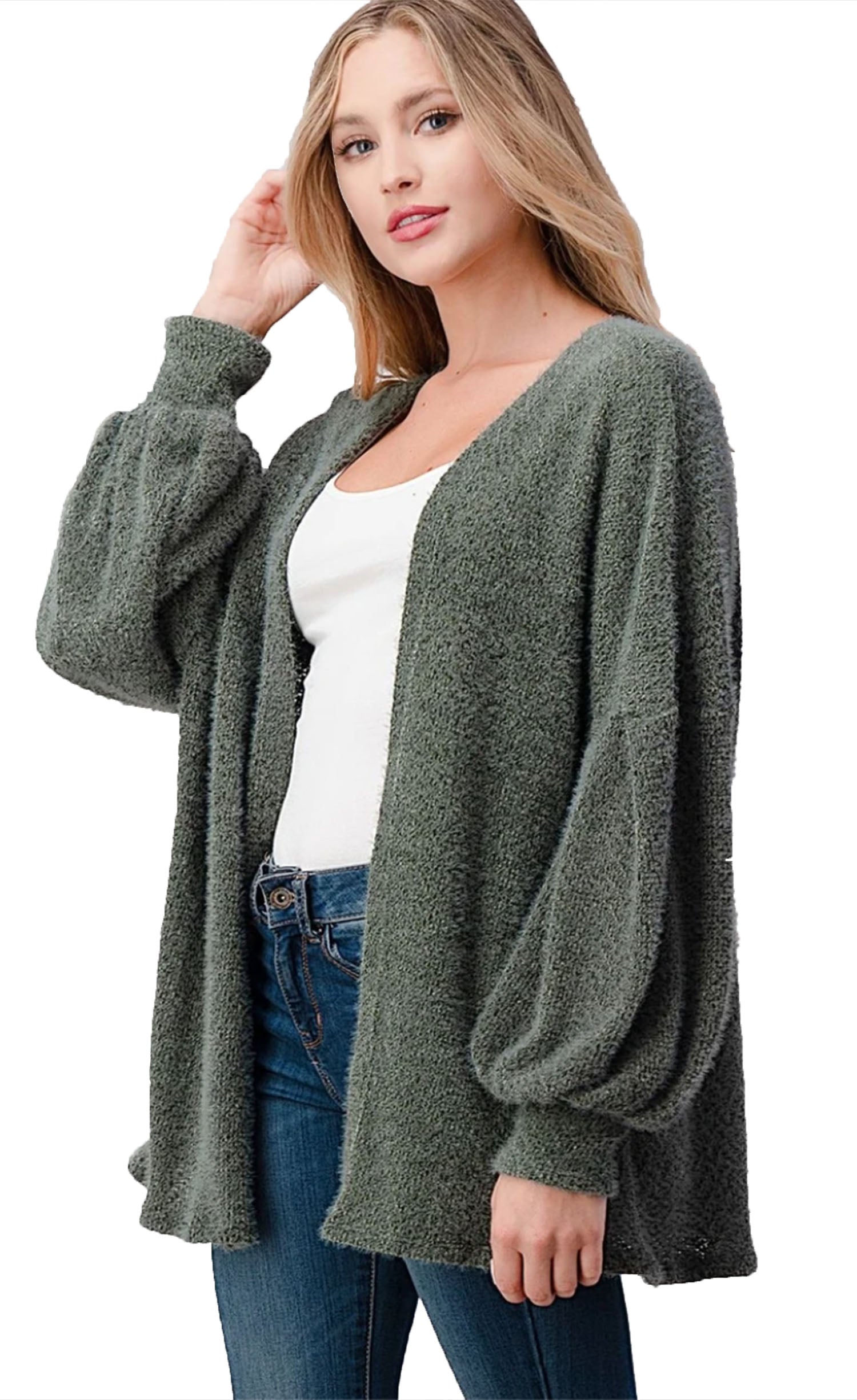Balloon Poet Sleeve Open Front Cardigan Sweater