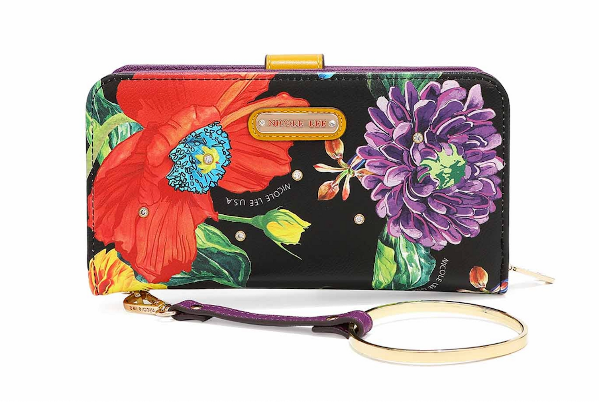 - Includes detachable wristlet strap with circle metal ring handle (3" diameter)