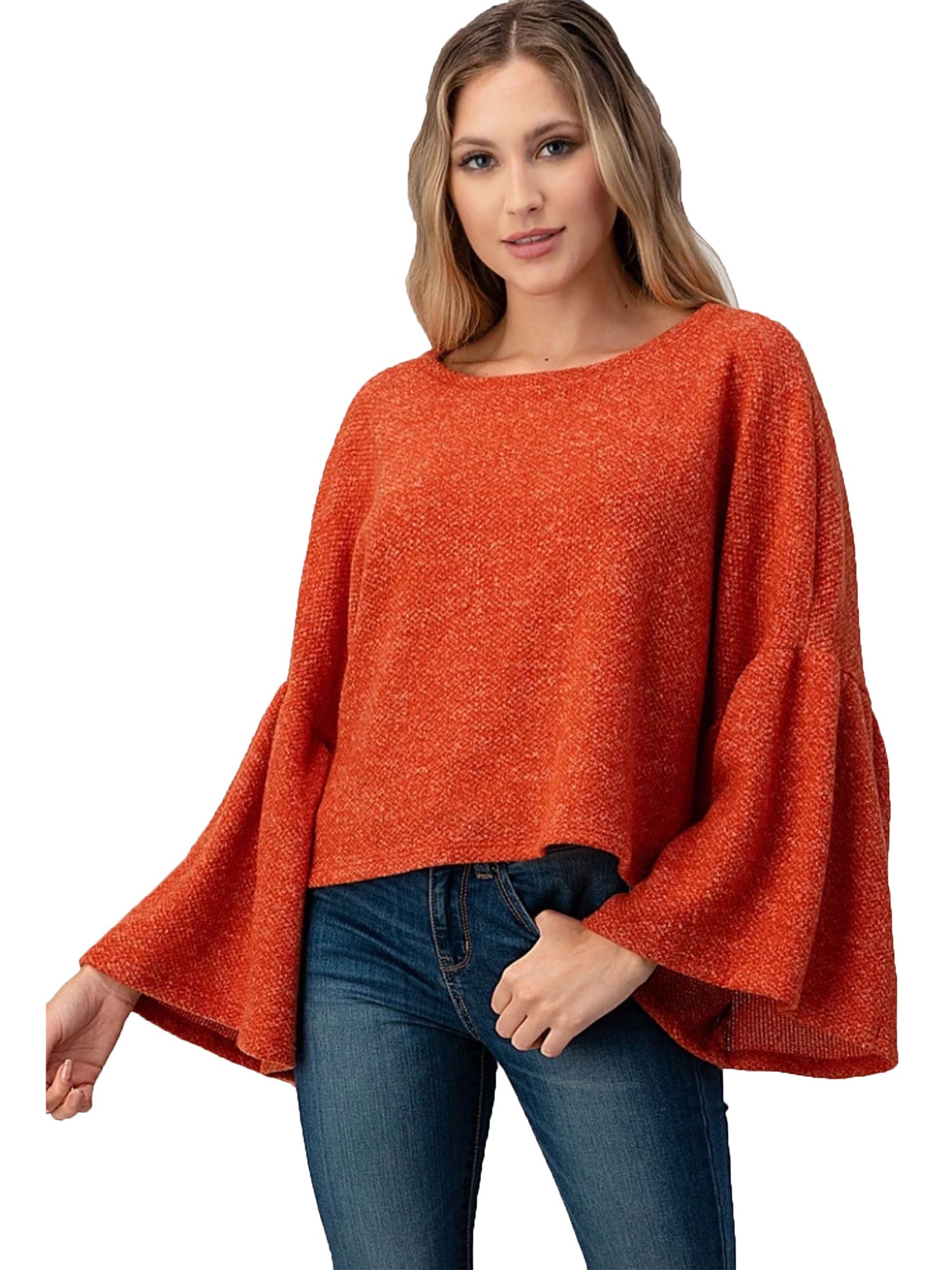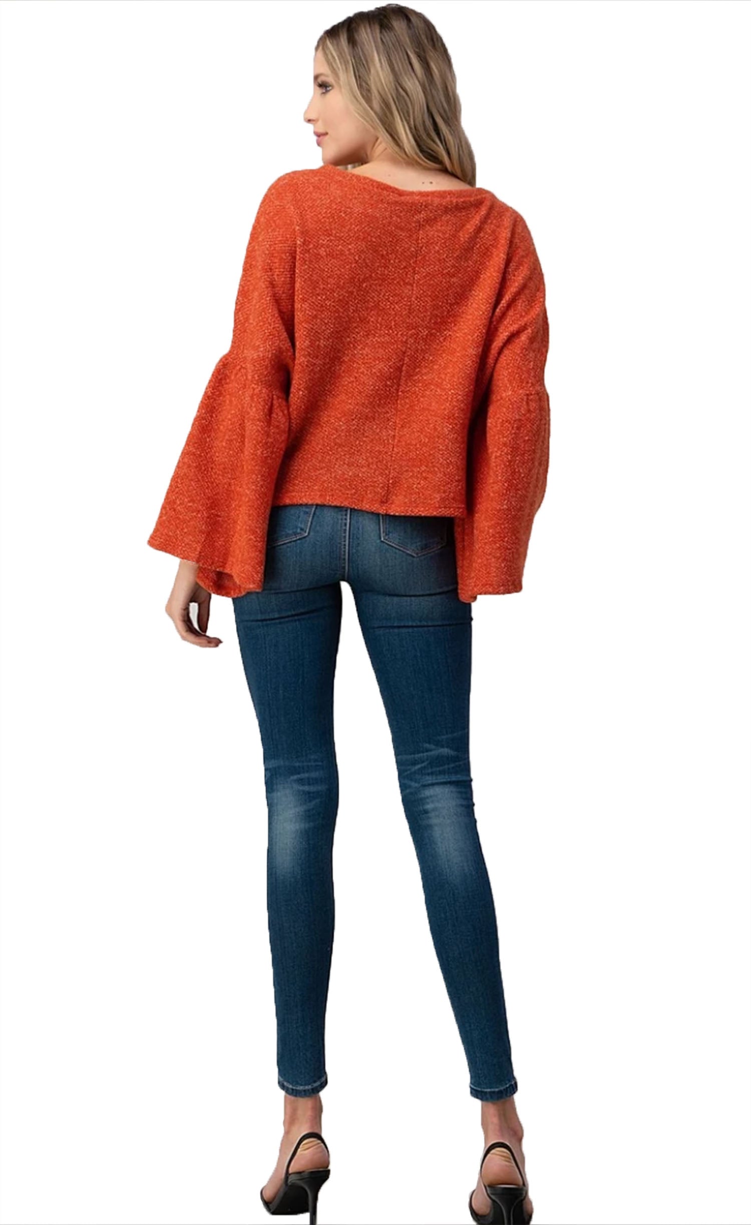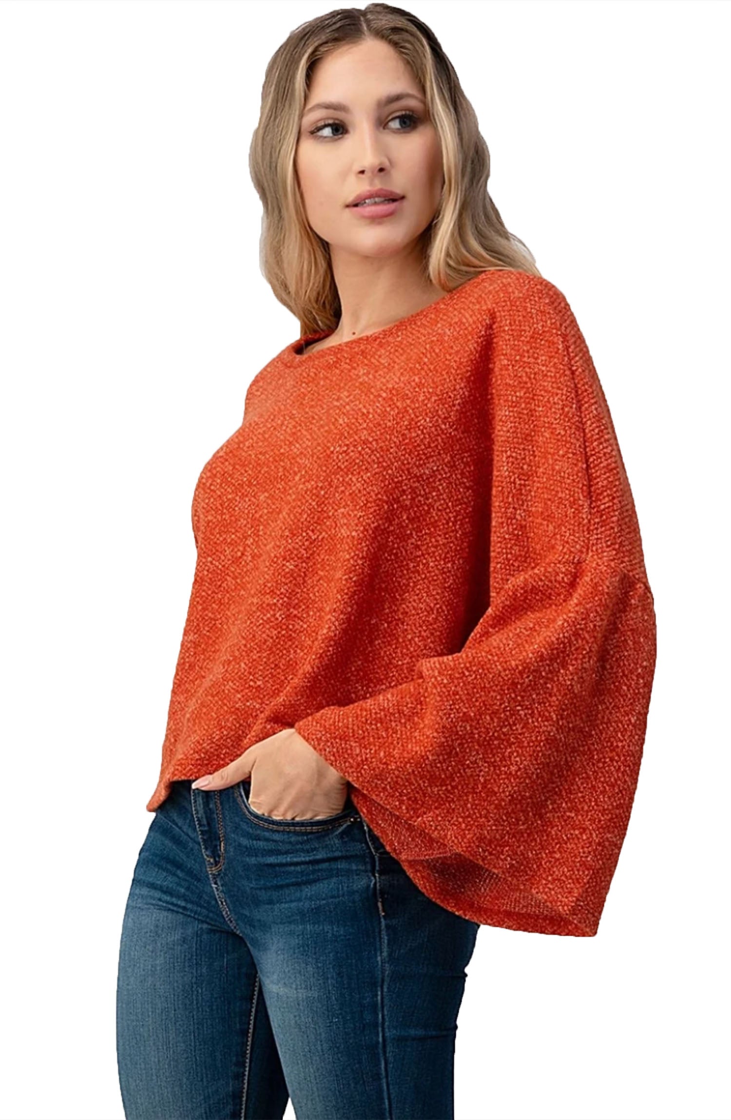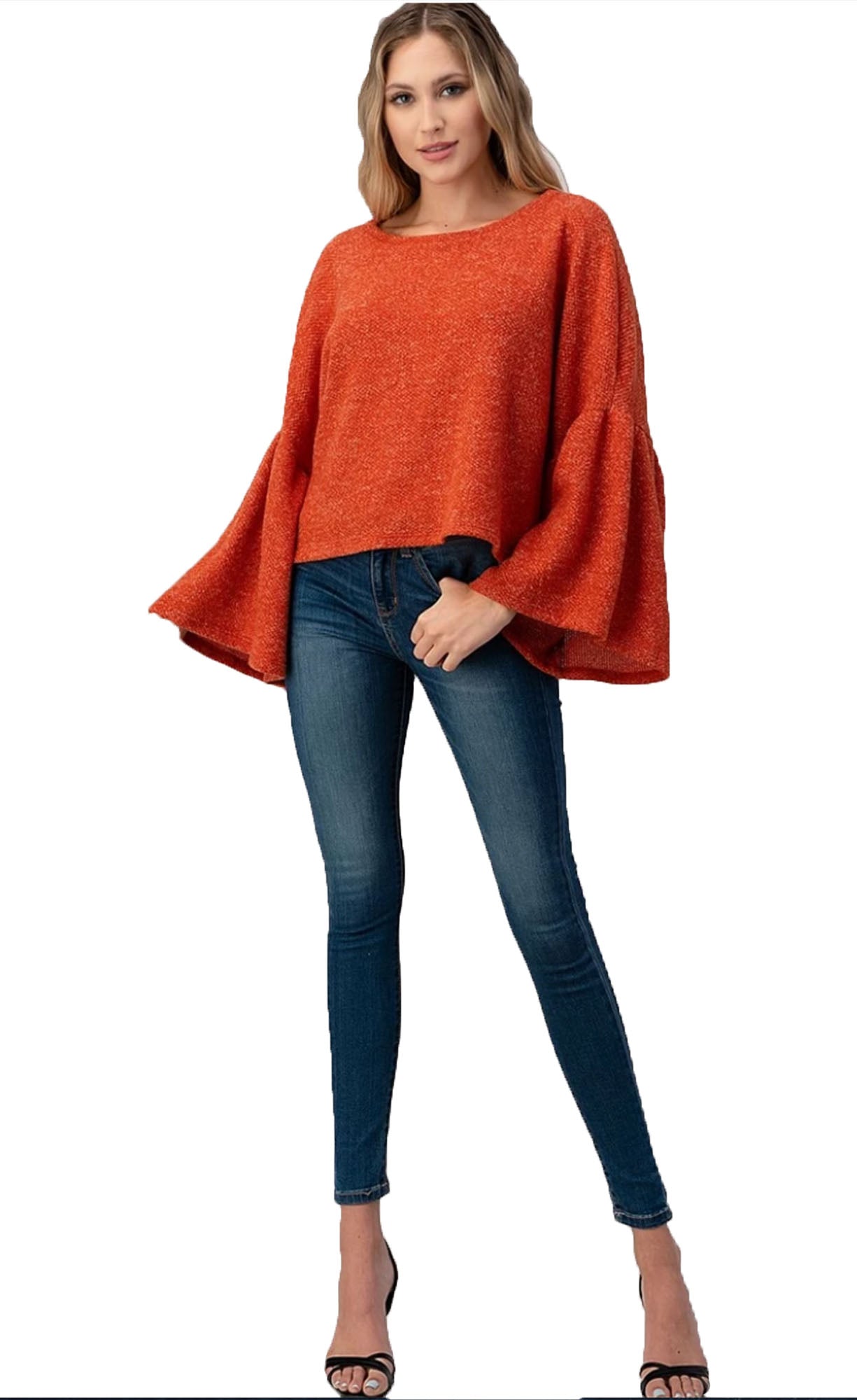 - Short crop top style sweater with a trendy sleeve design and a round neckline
