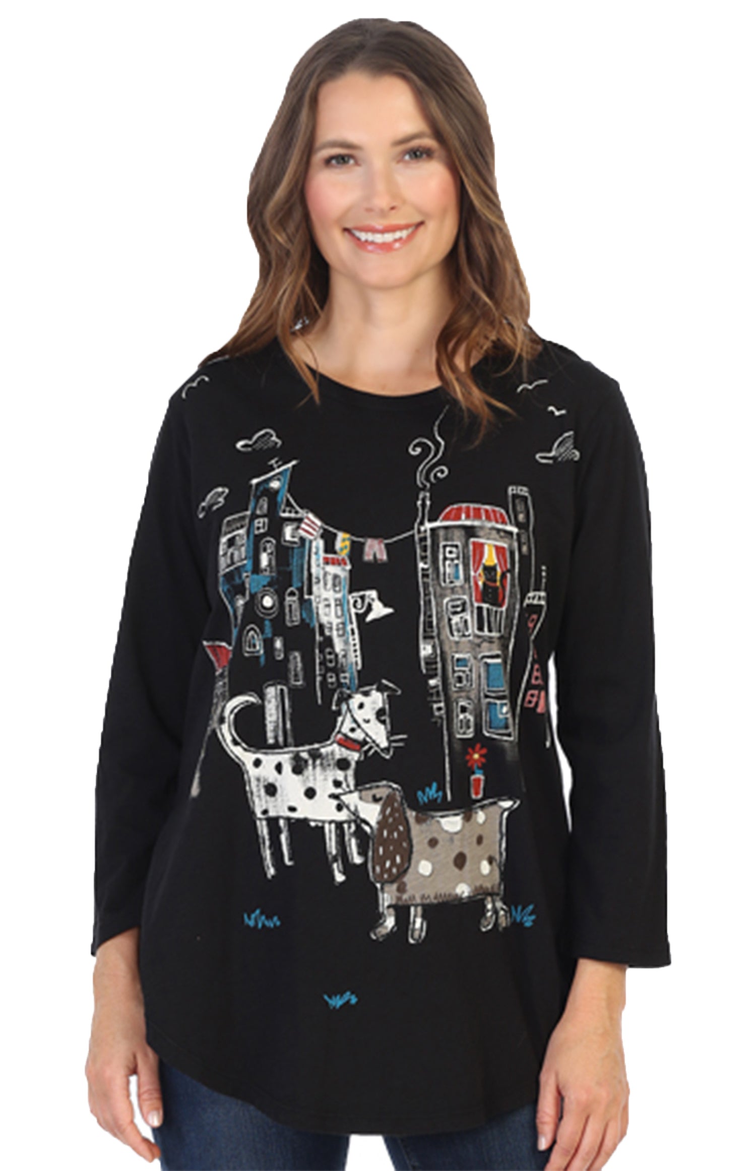 - Cat print for the dog lover in youwear with leggings or your favorite slacks.