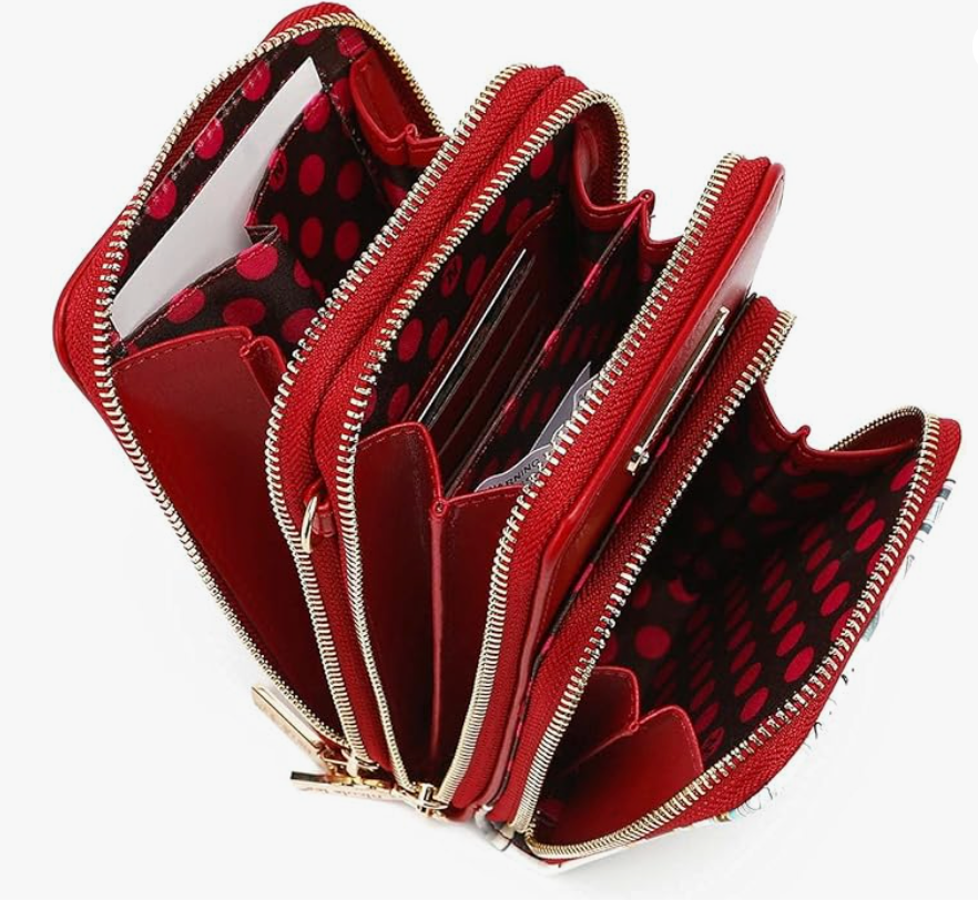 - Center zip compartment whit 2 interior 1 I'd window 3 card slots fix any phone /universal