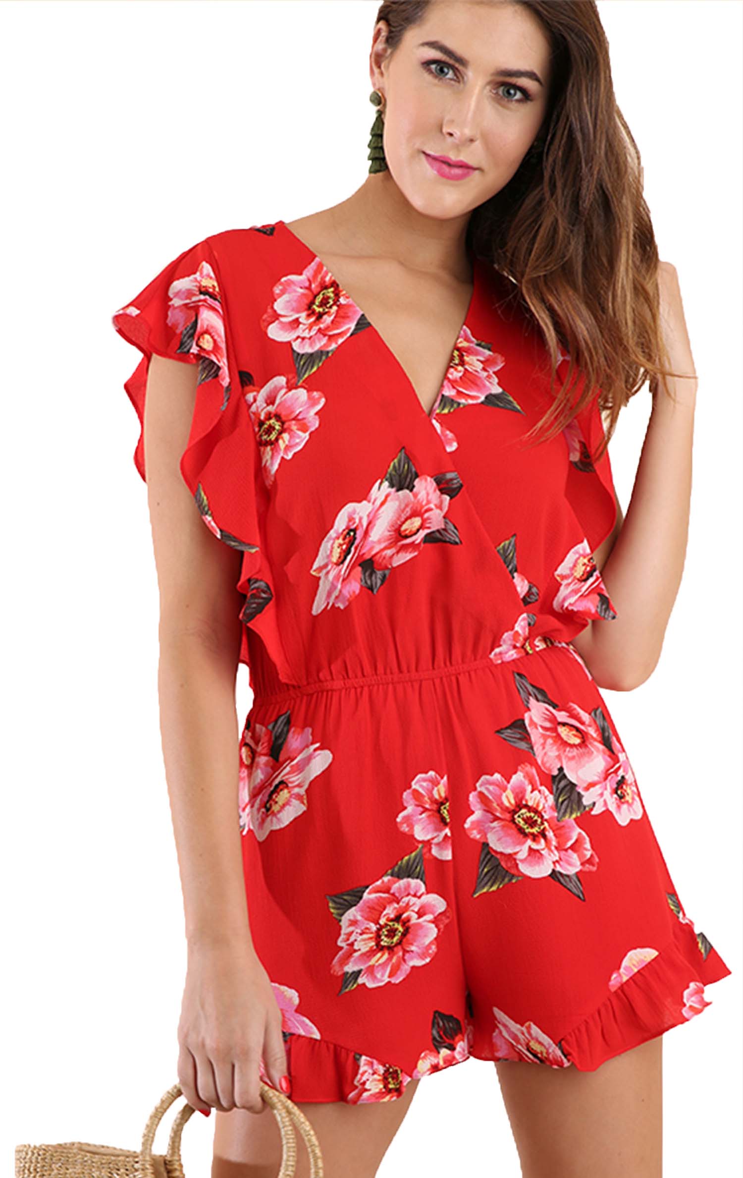 Tropical Floral Surplice Ruffle Romper
