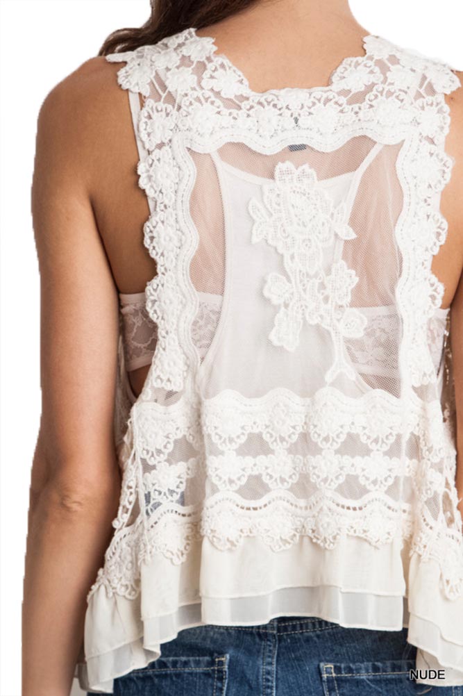 Bohemian Style Lace Ruffle Crop Vest