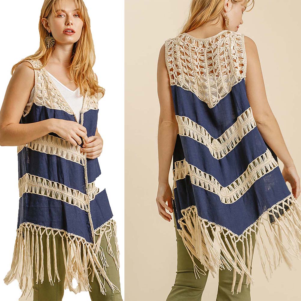 ![Crochet ]Open Front Duster Vest with Tassel Hem](http://www.kobelou.com/cdn/shop/files/Rose_Linen_Blend_Crochet_Detailed_Open_Front_Duster_Vest_with_Tassel_Hem_back.jpg?v=1718563568&width=1445)