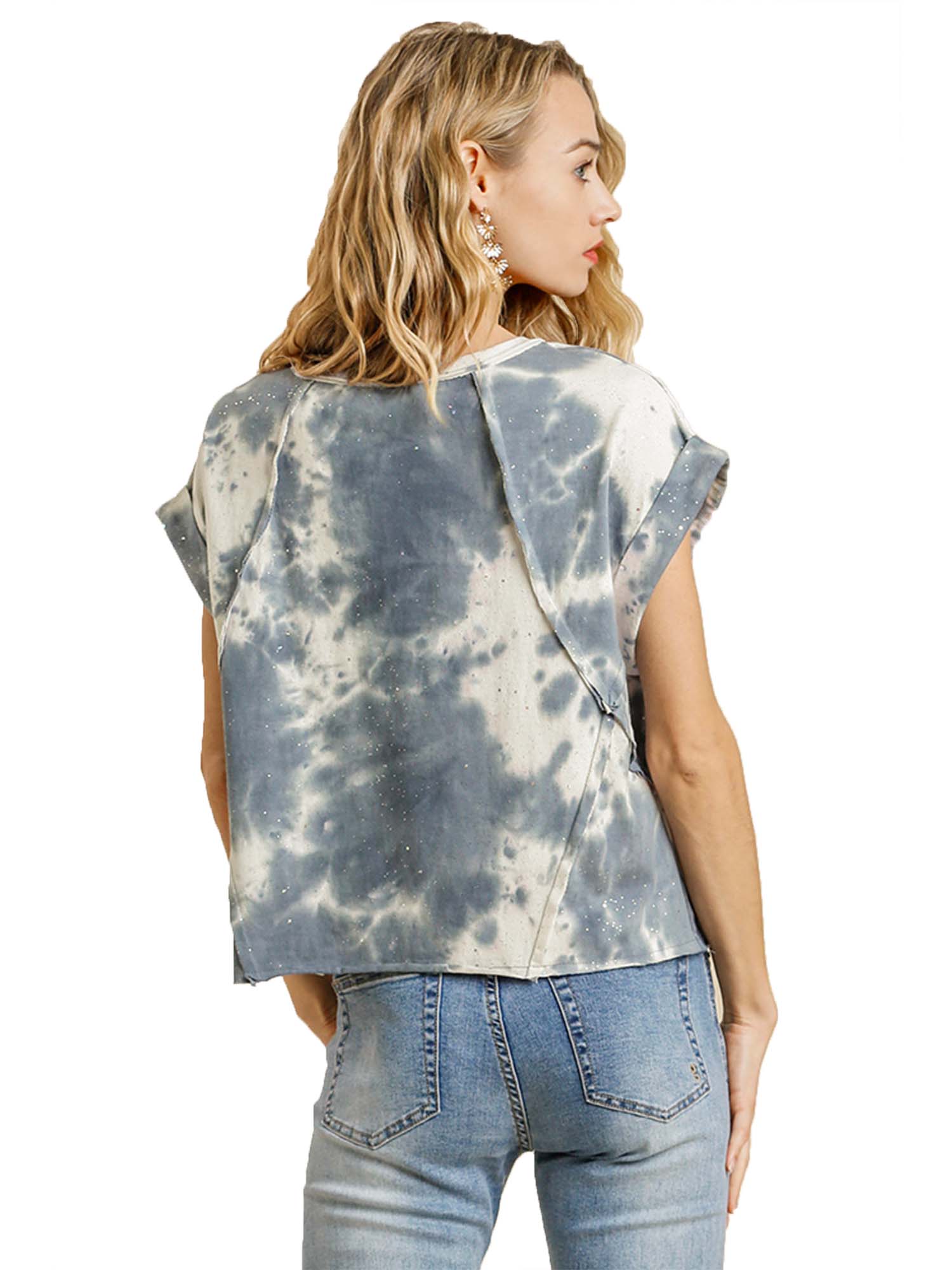 - Short sleeve with glitter on the tie dye cotton fabric