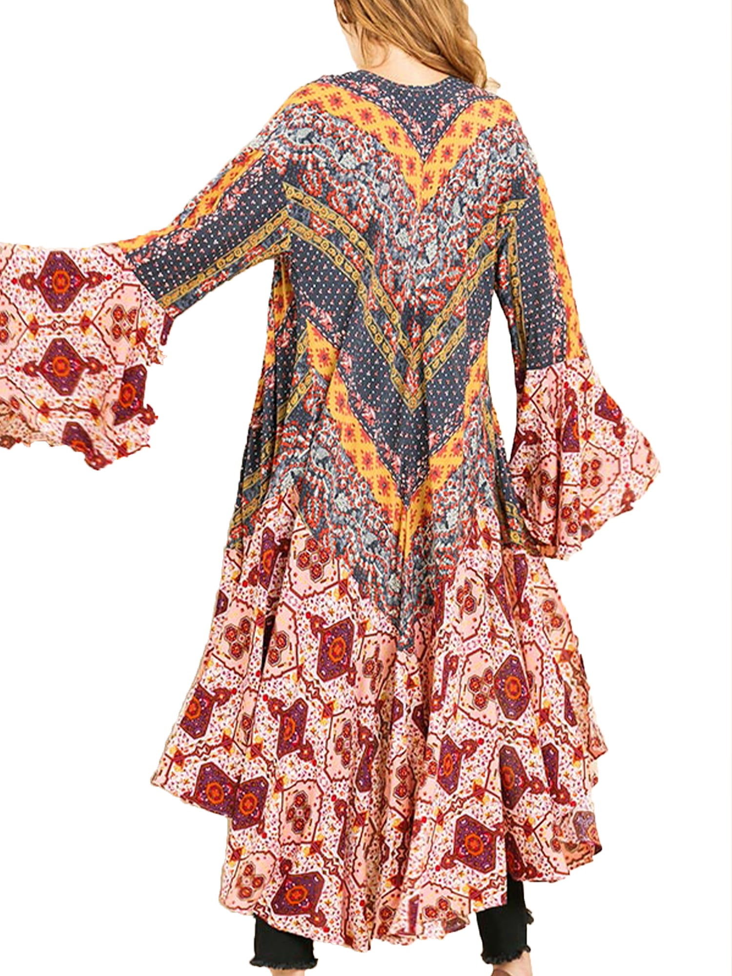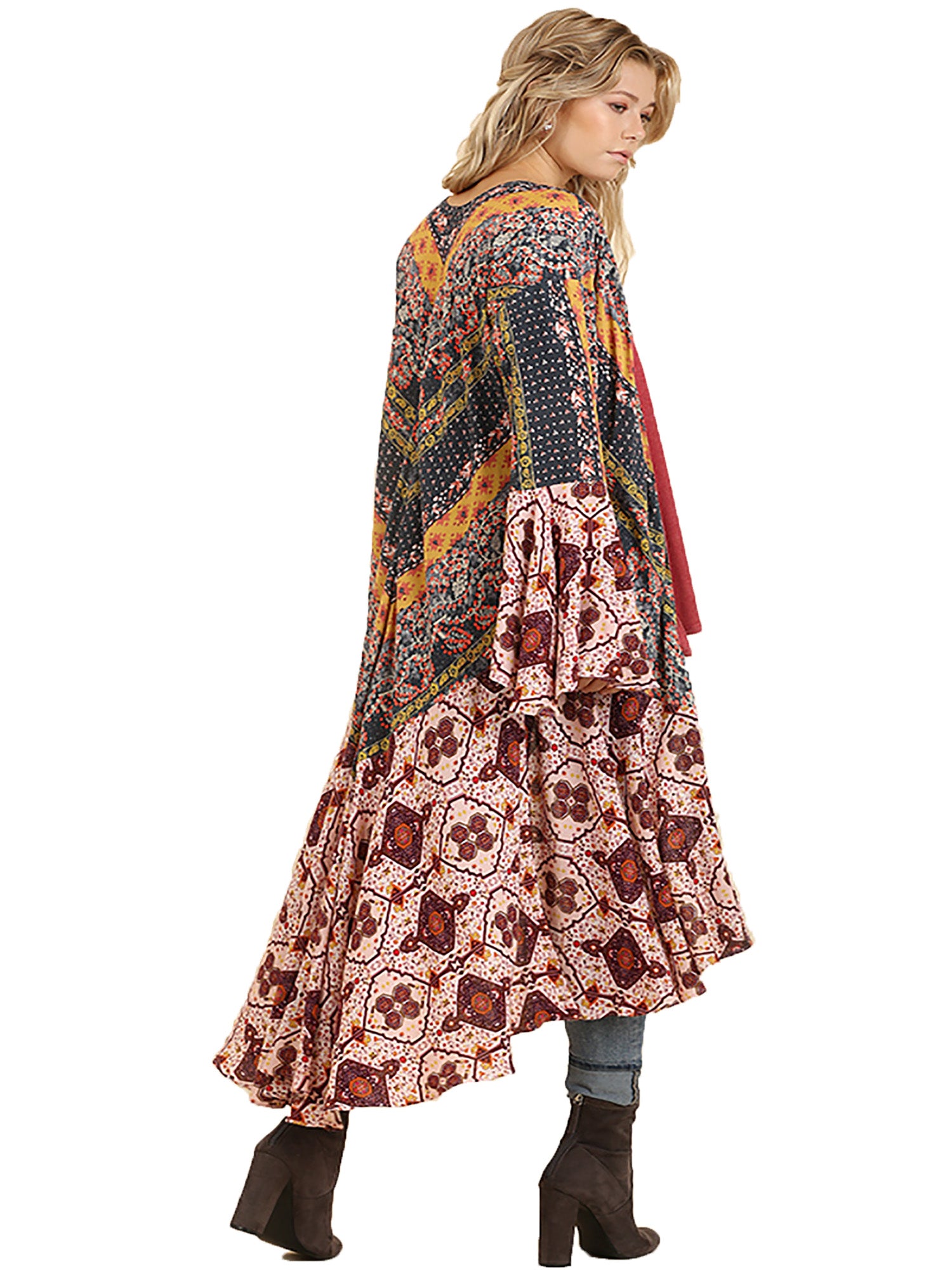 - Long duster style with a beautiful mixed print