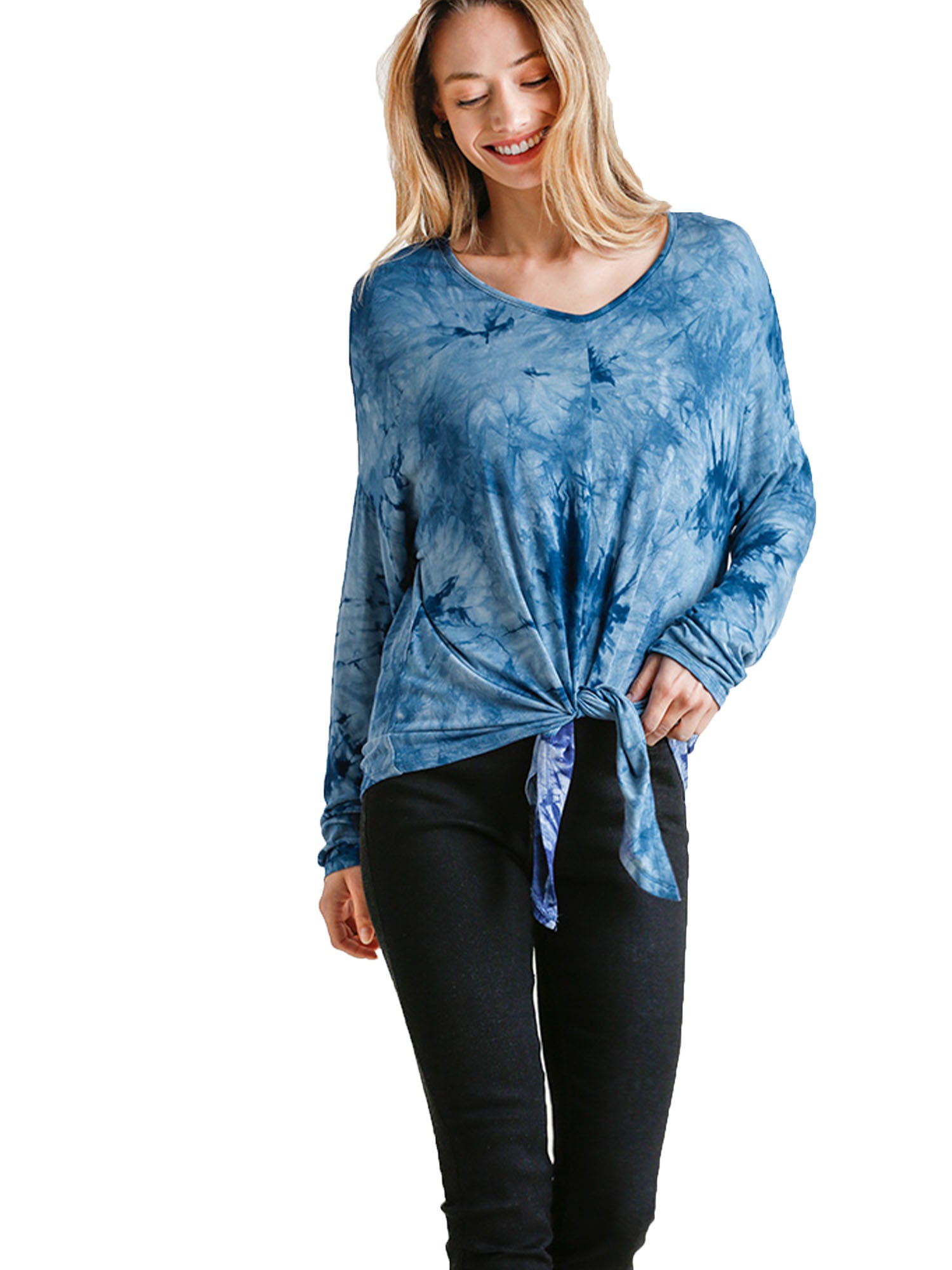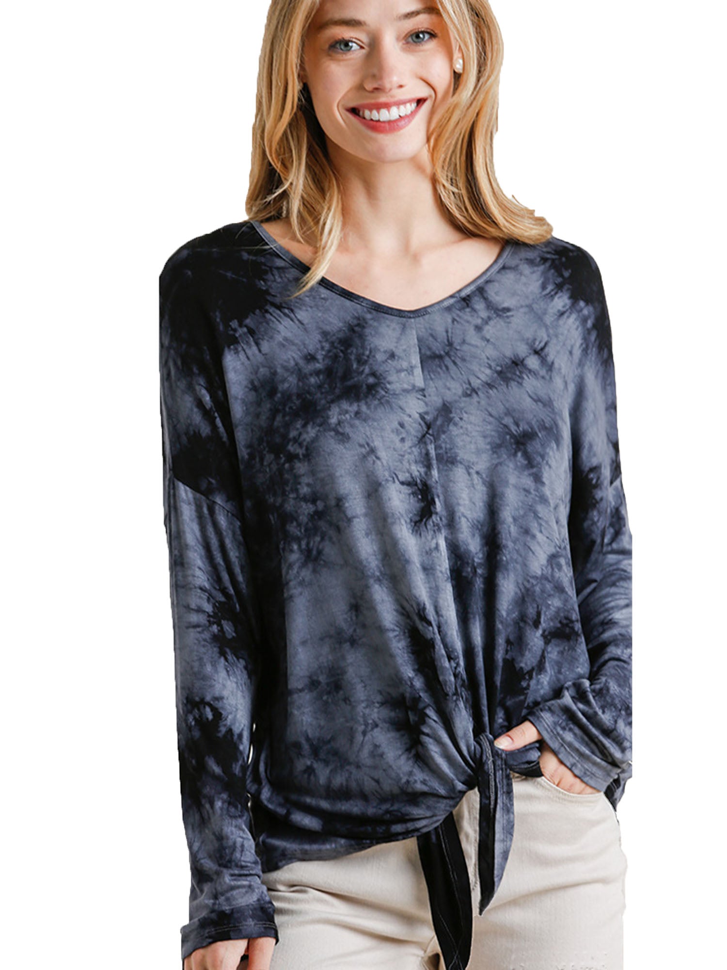 Tie-Dye Long Sleeve Top with Front Tie