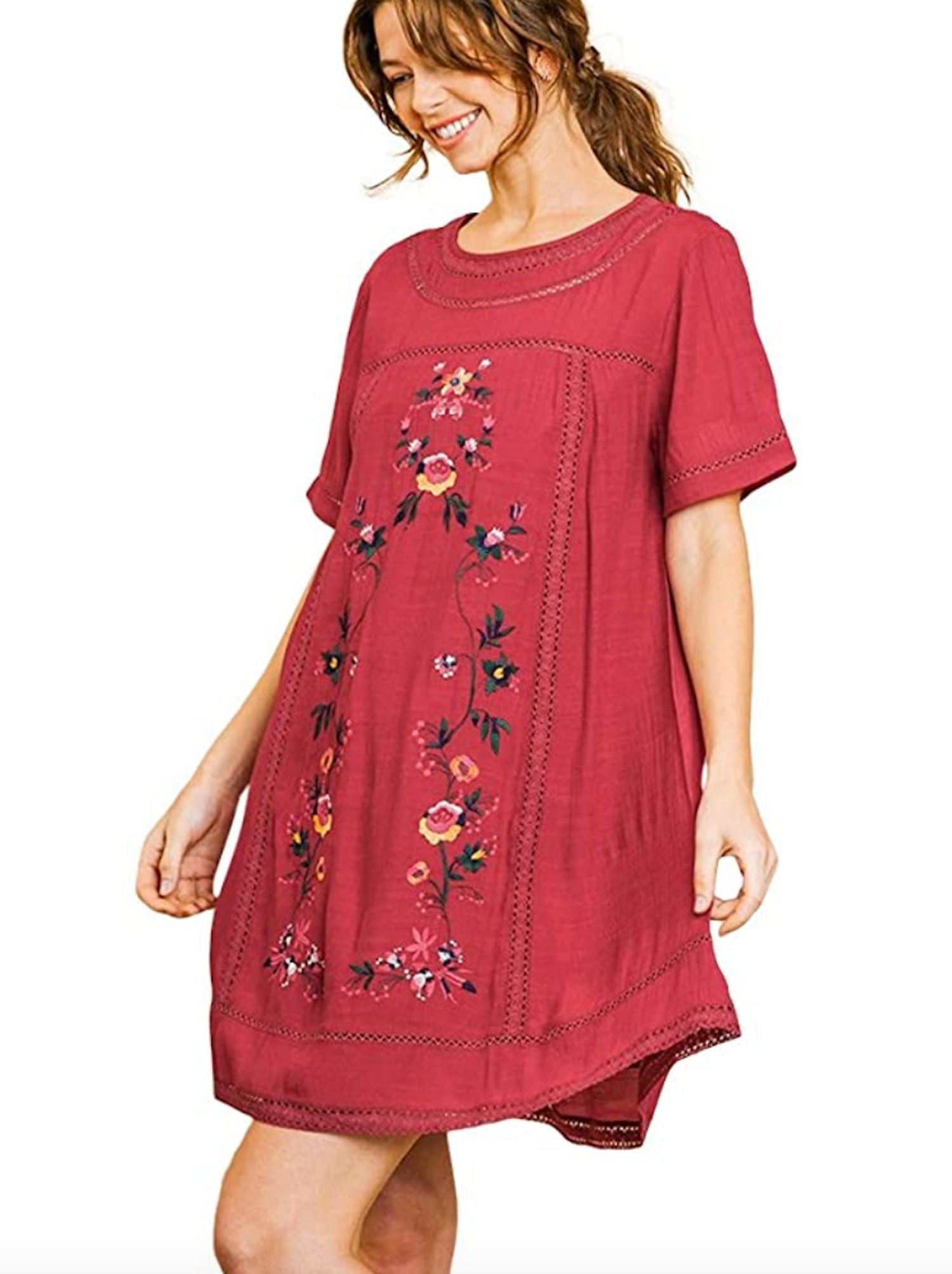 Bohemian Embroidered Short Sleeve Dress or Tunic