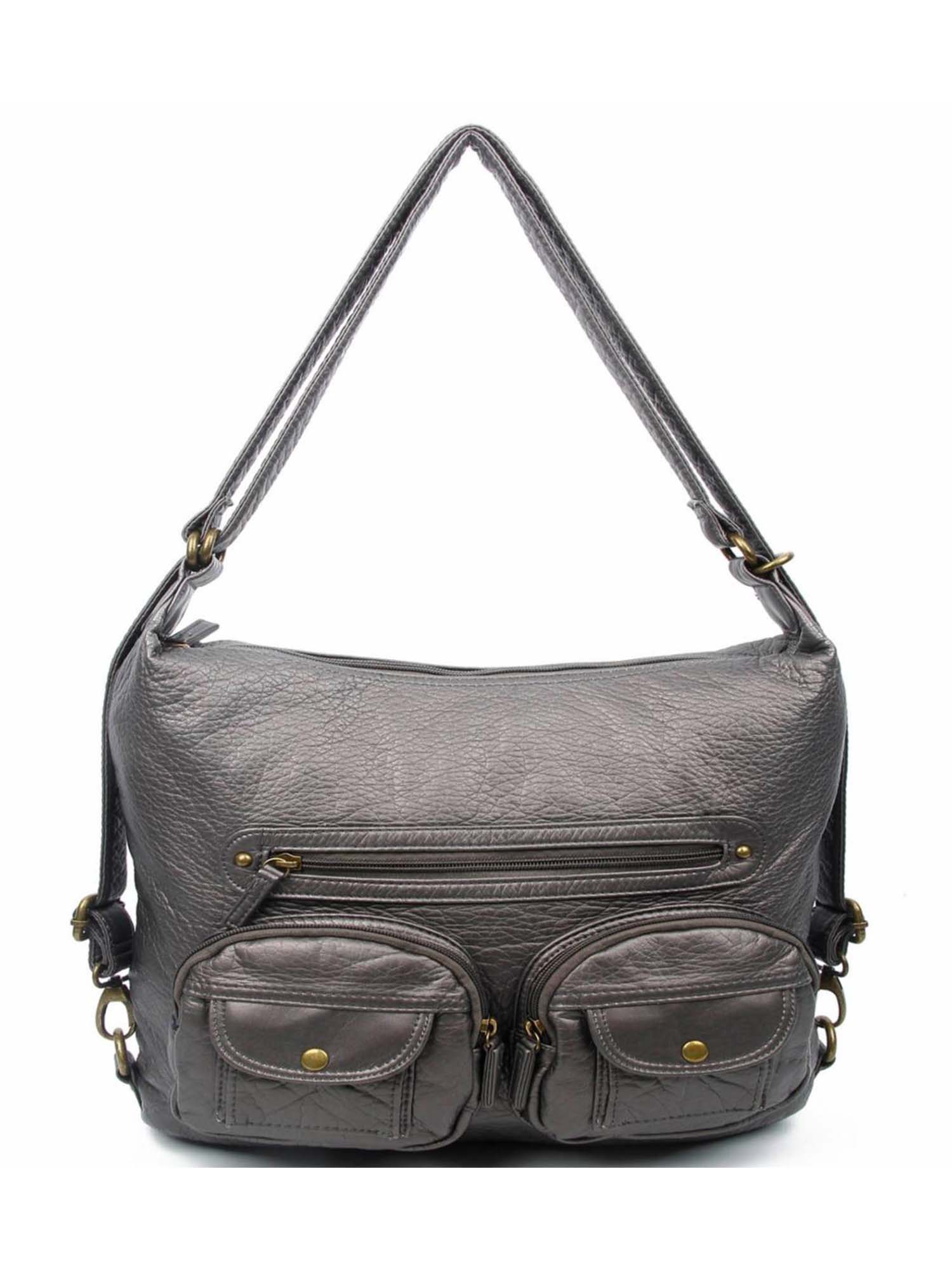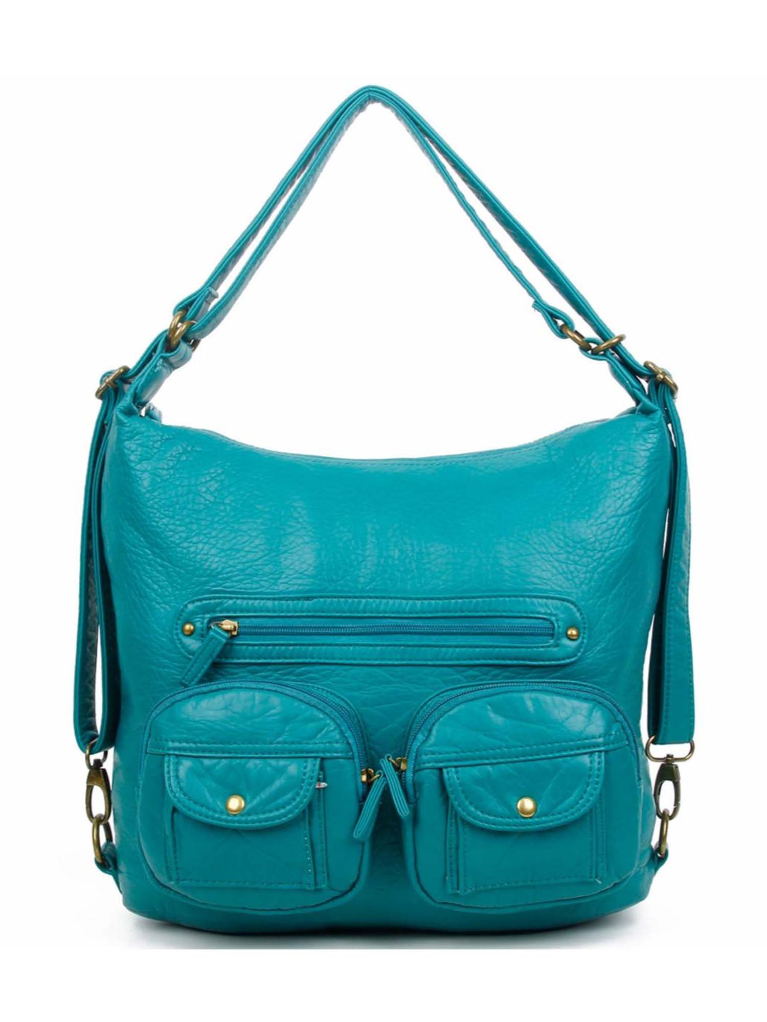 Vegan Leather Convertible Shoulder Bag, Backpack, Crossbody Bag